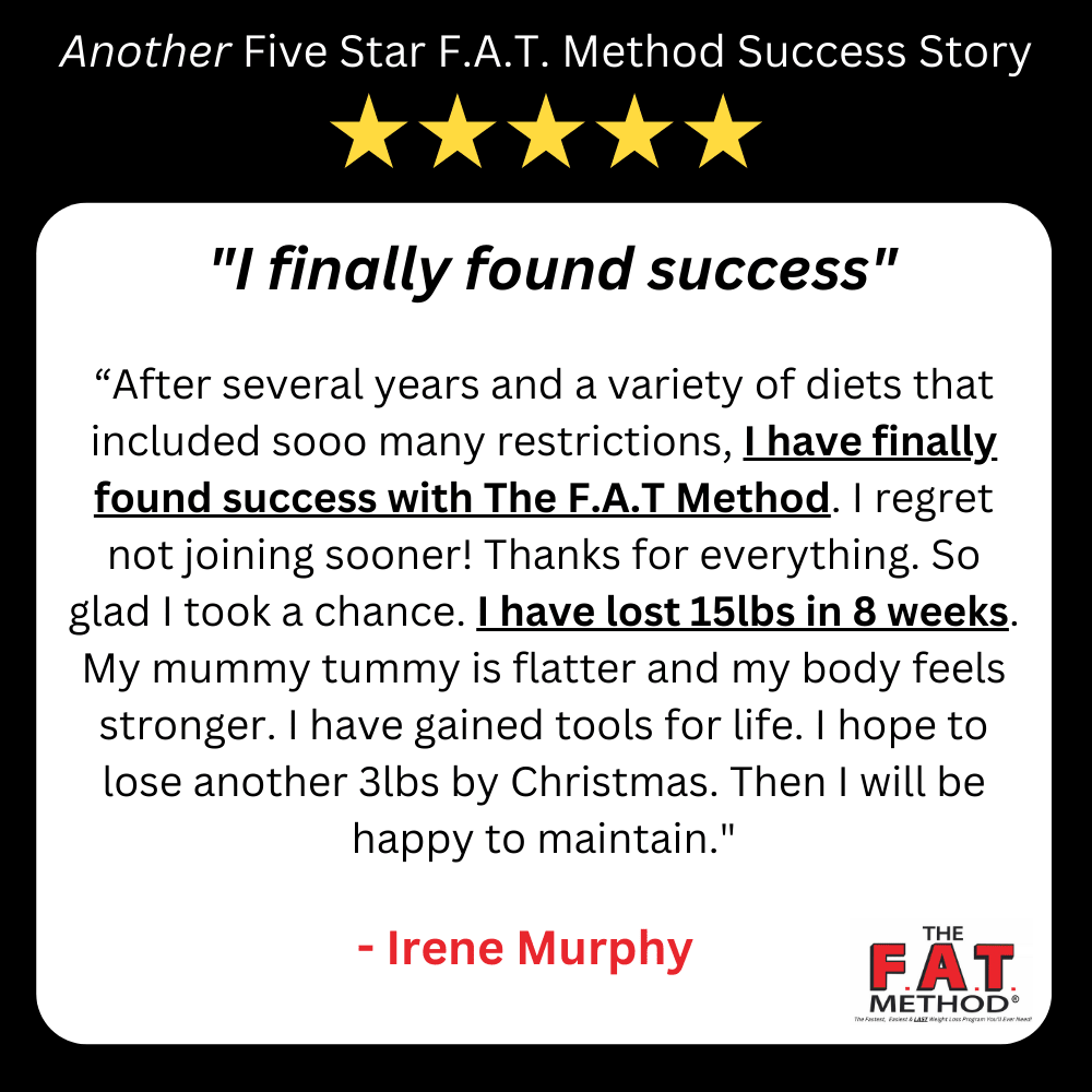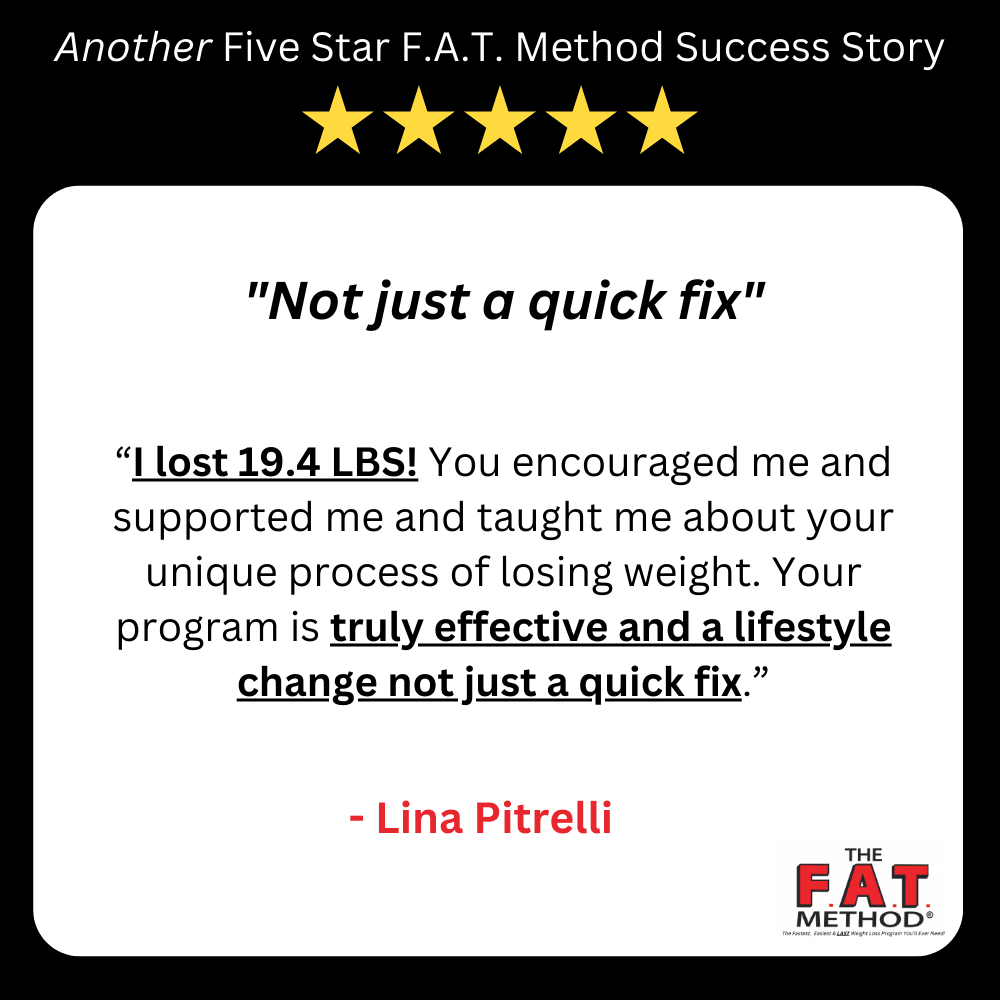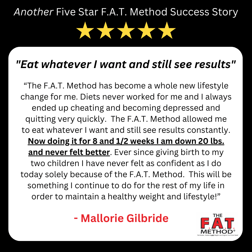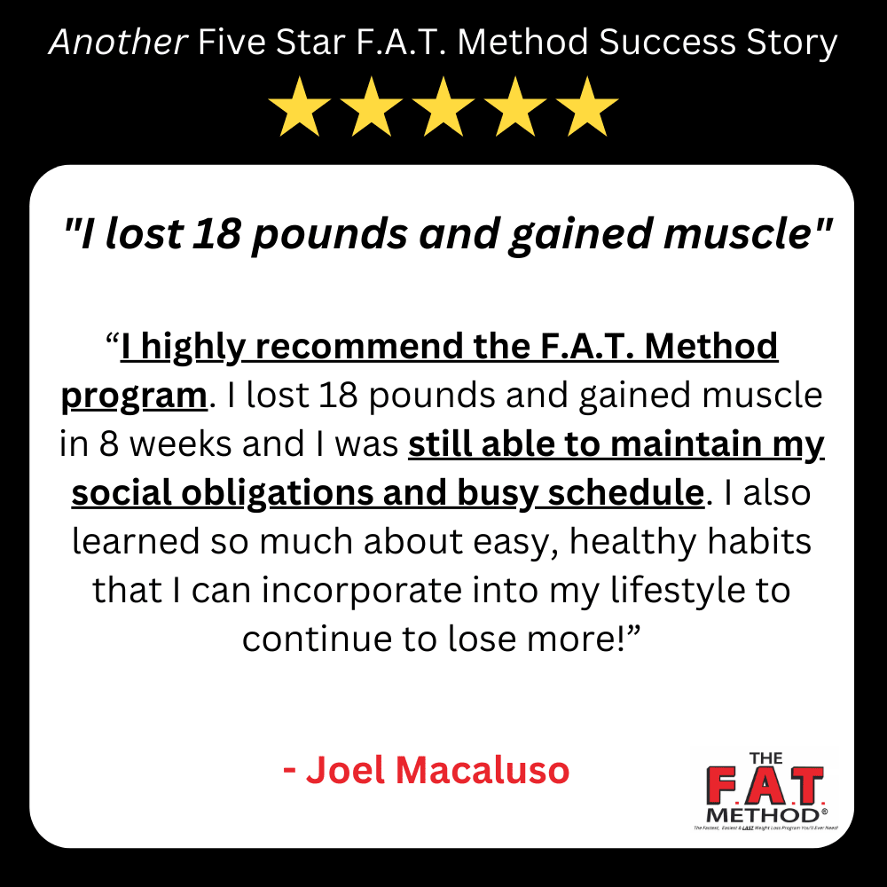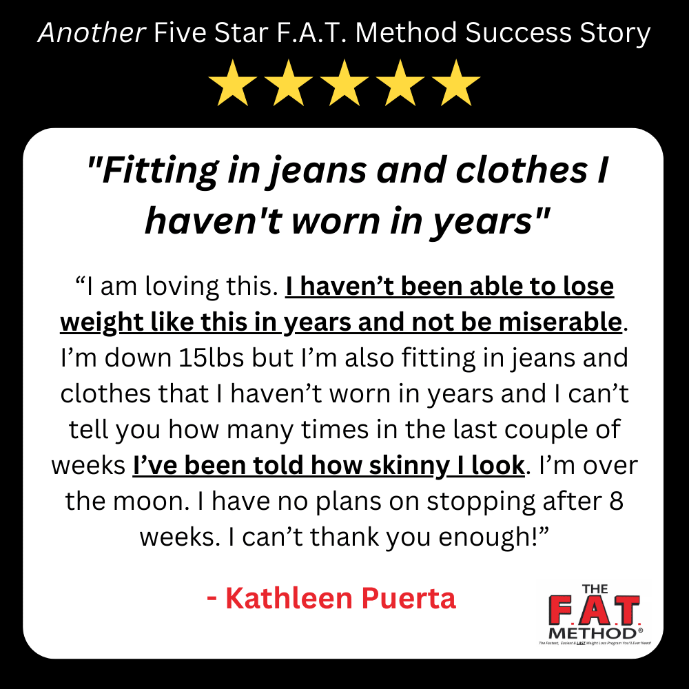And no more Yo-Yo’ing! The F.A.T. Method is truly SUSTAINABLE. Something you can do for life. Because it’s simple and healthy. And it makes you look and feel great.